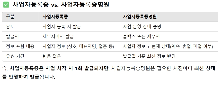 사업자등록증 vs. 사업자등록증명원