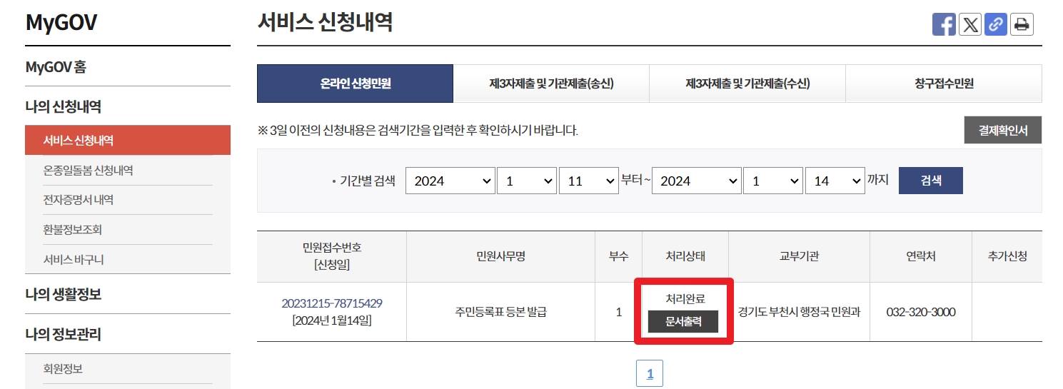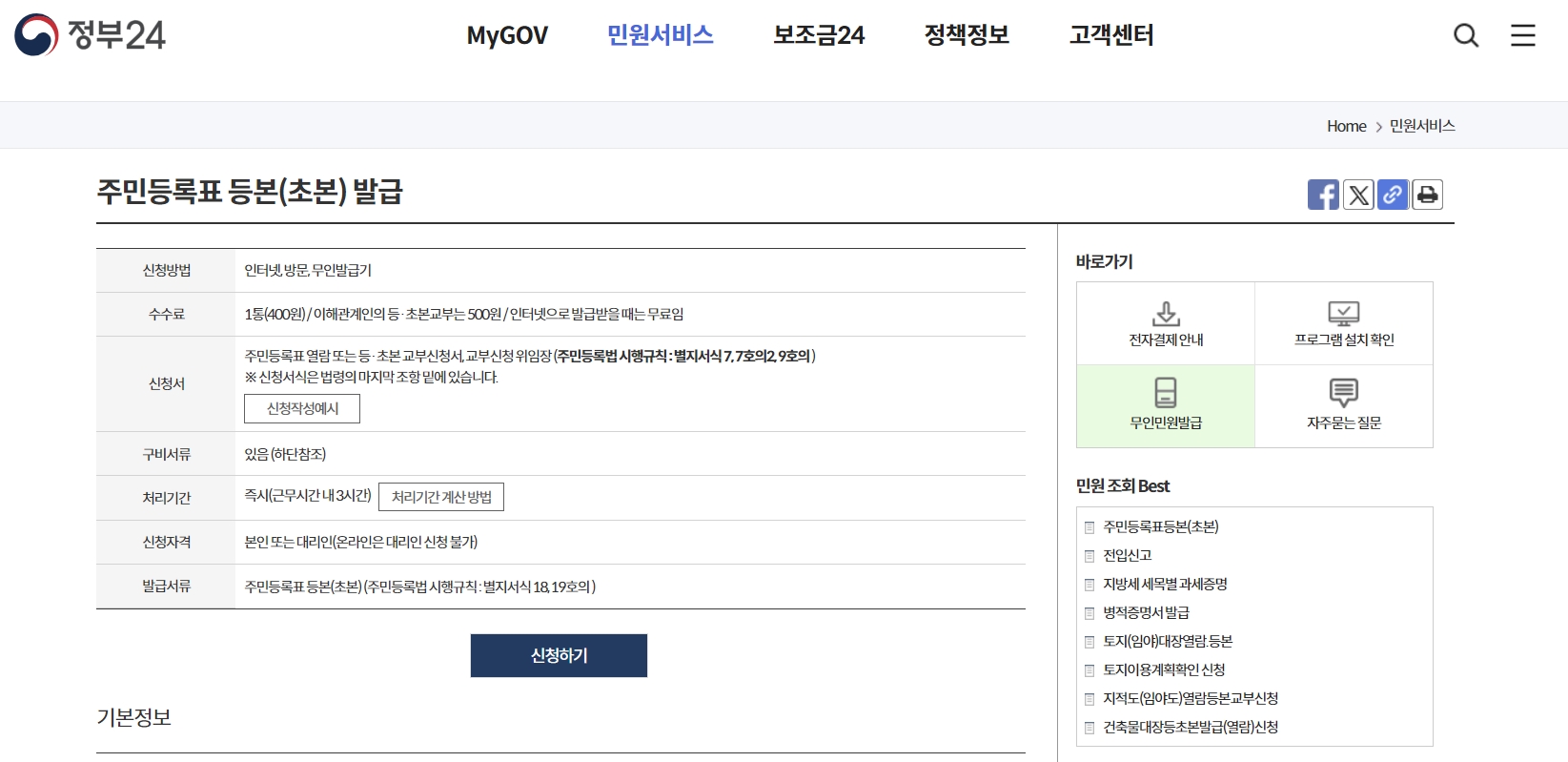 2) 정부 24 사이트 → 주민등록표 등본(초본) 신청하기