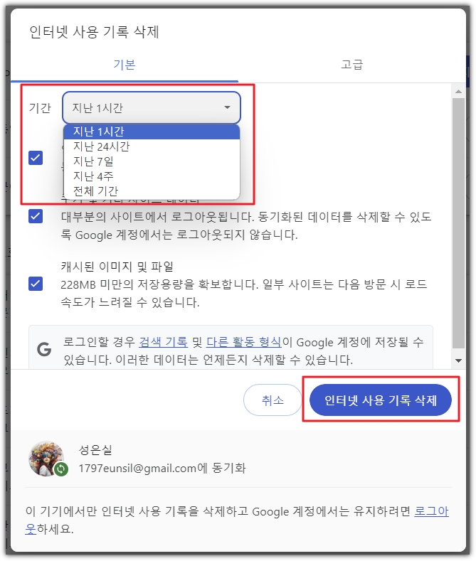 >>> 기간을 선택하여 삭제 기간을 설정합니다.
