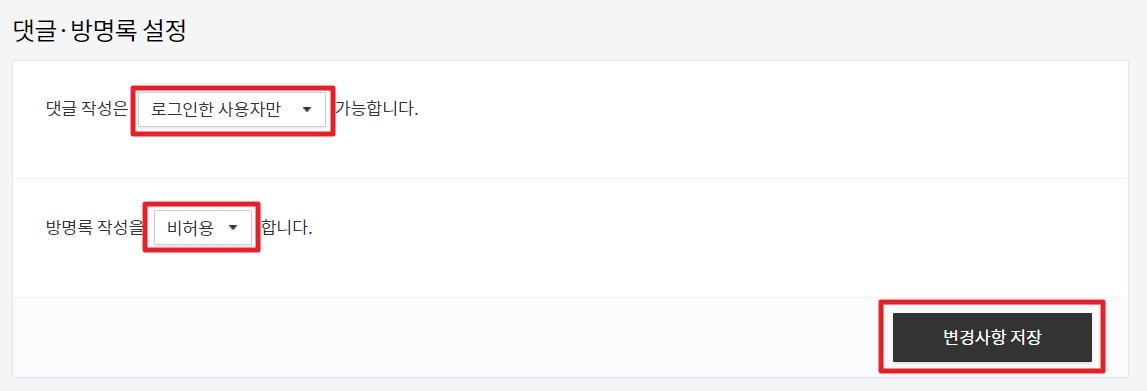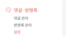 >>> 또다시 왼쪽 항목 중 댓글. 방명록 아래 설정을 클릭합니다.