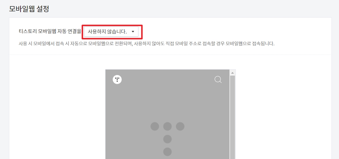 >>> 모바일 설정에서는 "사용하지 않습니다"로 반듯이 설정을 해주셔야 문제가 발생되지 않습니다.