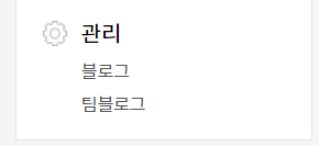 >>> 새로 만들어진 블로그 이름 오른쪽에 관리(톱니바퀴 모양)를 클릭하여 관리 페이지로 들어갑니다.